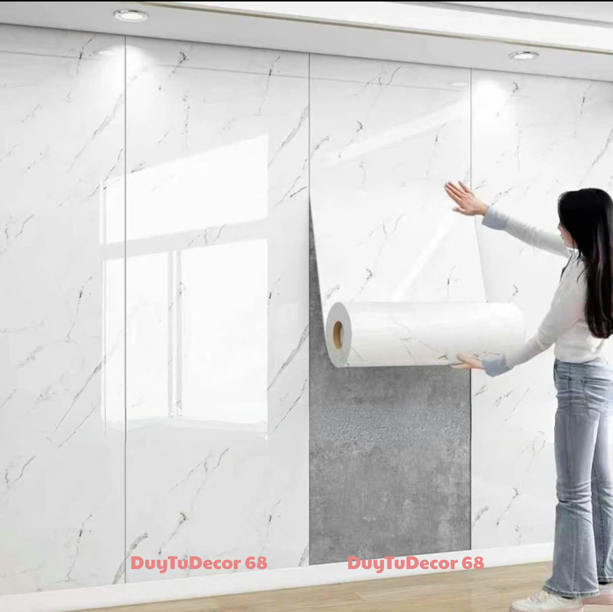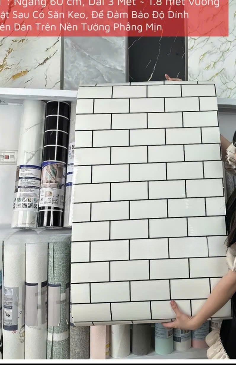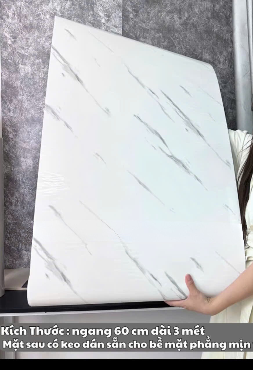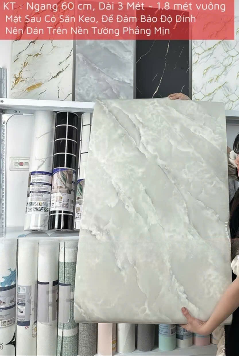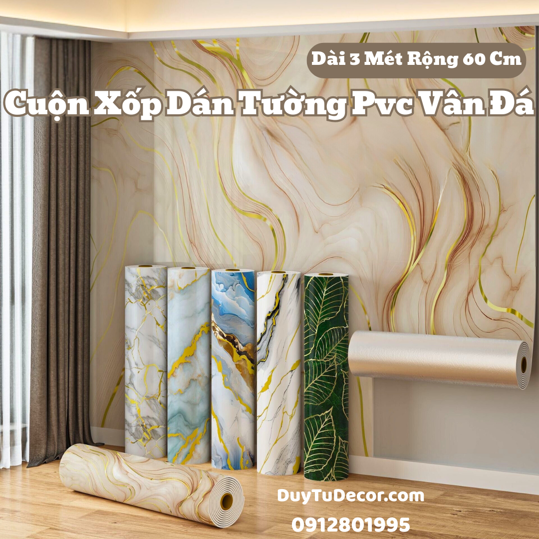 Cuộn Xốp Dán Tường bề mặt phủ PVC vân đá, có sẵn keo